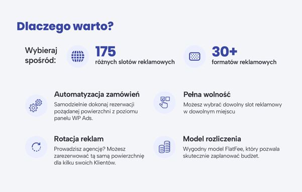 Stale rozwijając zakres produktów reklamowych na platformie WP Ads przyświeca nam jeden cel - oddać Wam do dyspozycji szeroką gamę elastycznych możliwości, z których każdy znajdzie ‘coś dla swojego biznesu’.
