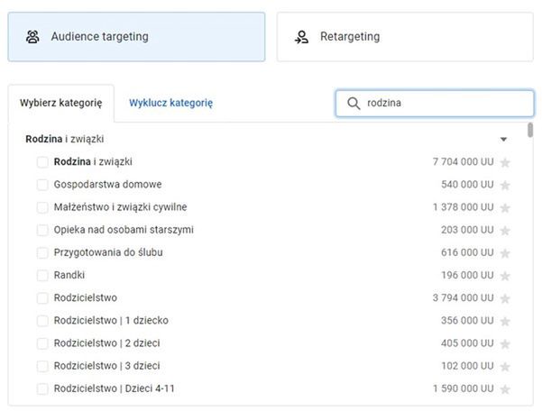 Usprawniliśmy wyszukiwarkę i dodaliśmy drzewka kategorii, które pomogły uporządkować dostępne segmenty. Użytkownicy mogą teraz łatwiej nawigować po różnych opcjach targetowania, co znacząco przyspieszy i uprości wybór odpowiednich grup docelowych.