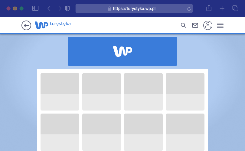 Turystyka Go to reklama premium w serwisach WP Turystyka i WP Pogoda. Obecność w górnym slocie gwarantuje intensywne budowanie wizerunku i dotarcie do użytkowników zainteresowanych podróżami. To rozwiązanie, które łączy duży zasięg z odpowiednim kontekstem tematycznym.