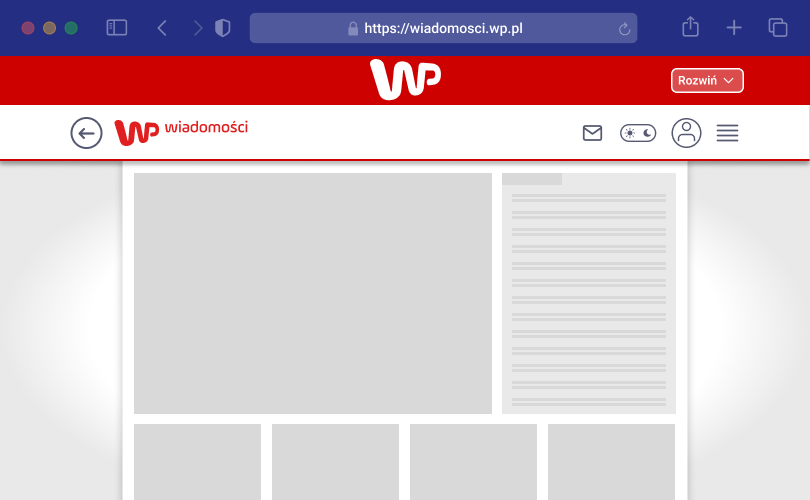 WP Wiadomości Panel Premium to prestiżowy format reklamowy nad topem serwisu WP Wiadomości. Emisja cross-device zapewnia pełną widoczność w dniu kampanii. To doskonała przestrzeń dla marek, które chcą wyróżnić się w kontekście najważniejszych wiadomości.